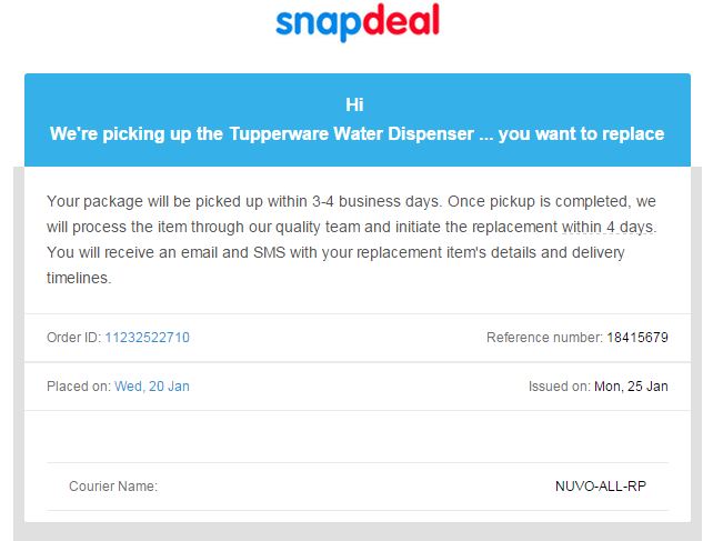 Hope you take a look at this one. I wanted something very urgently and placed a order with snapdeal. Surprisingly, I received an incomplete order. I requested for a replacement immediately.