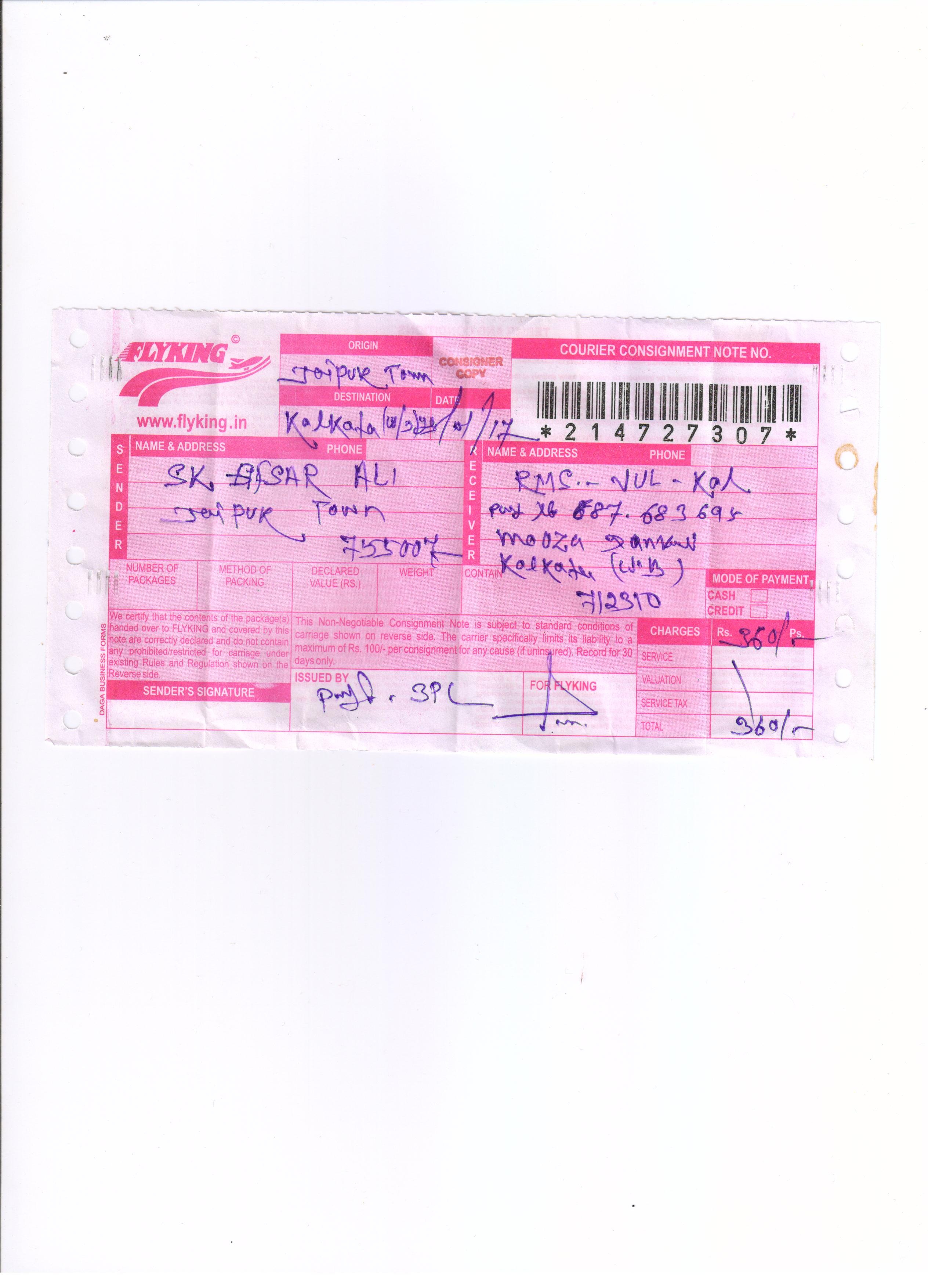 Here I am uploading the mail sent by Snapdeal and the reverse ship receipt of the flying king courier