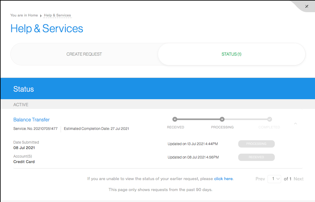 I placed a request for balance transfer from other credit card on 8th Jul 2021 - I had specially requested that if this is not processed by 10th Jul 2021 the request should be cancelled.