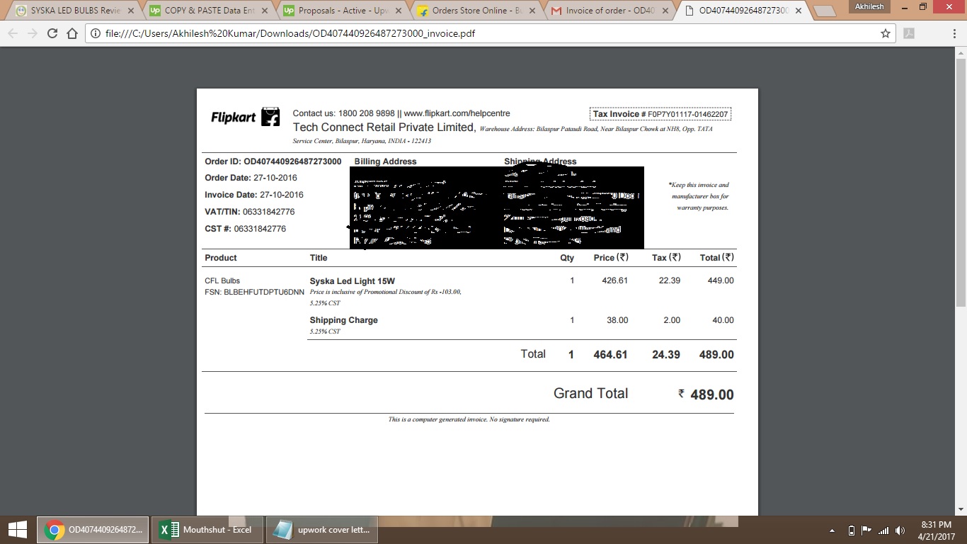 I bought it from flipkart as a package of 3 Syska LED bulbs for Rs. 489 under Diwali offer.