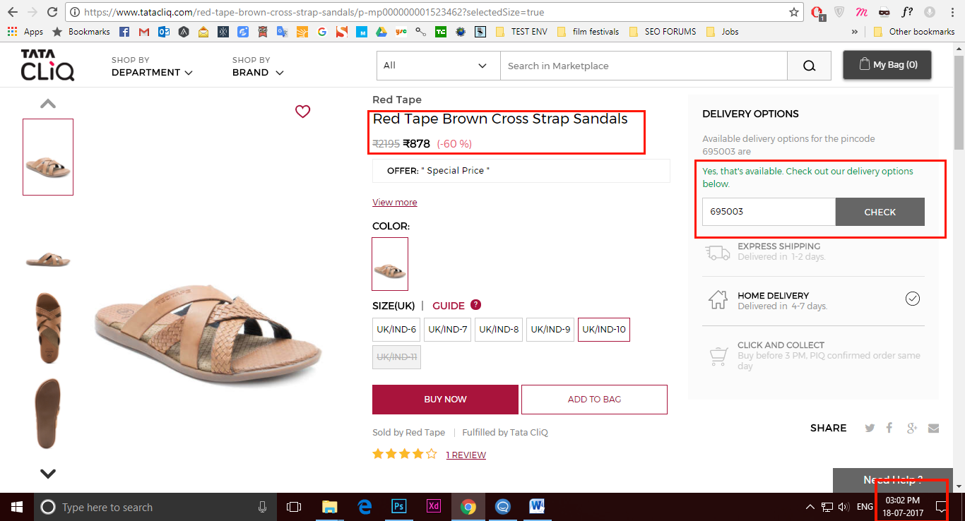 I was very much impressed and placed the order for Red Tape Brown Cross Strap Sandals(size UK/IND -10).