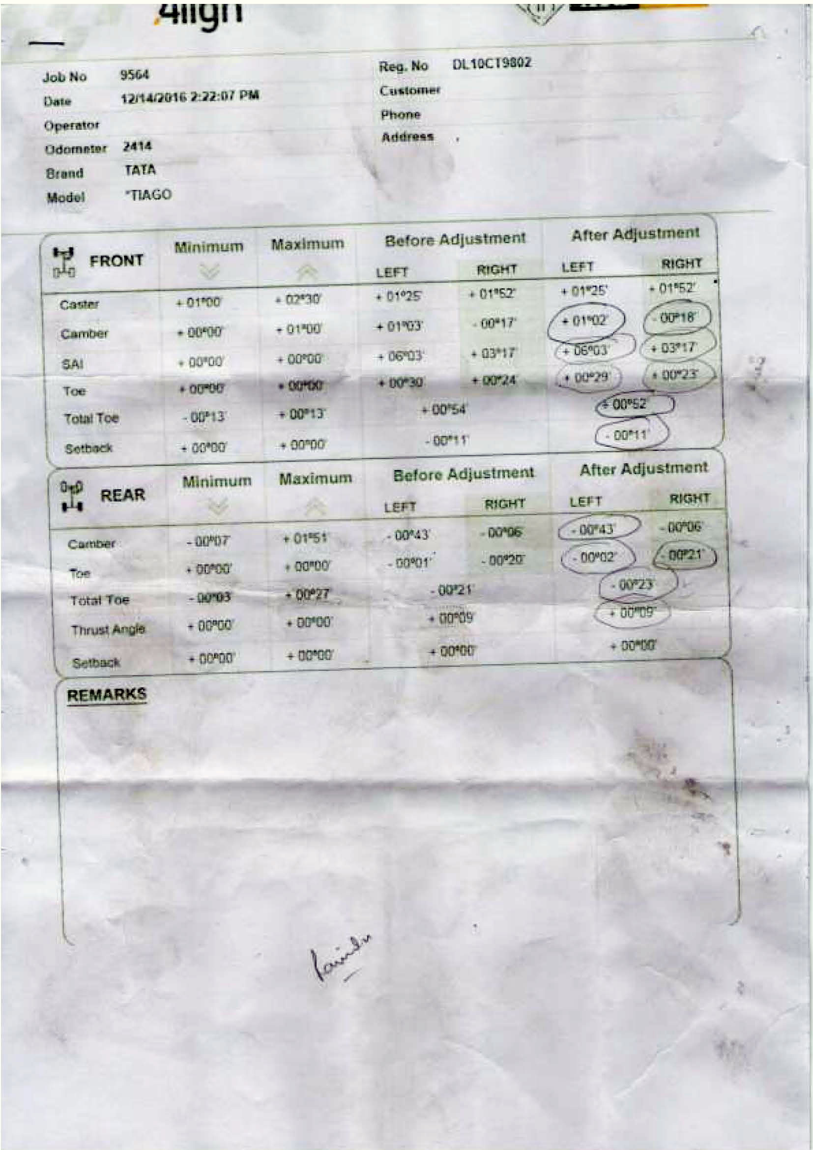 I was again asked to send the vehicle on 15th Dec and it was picked up from my works again and the alignment now done at some outside workshop at dwarka.