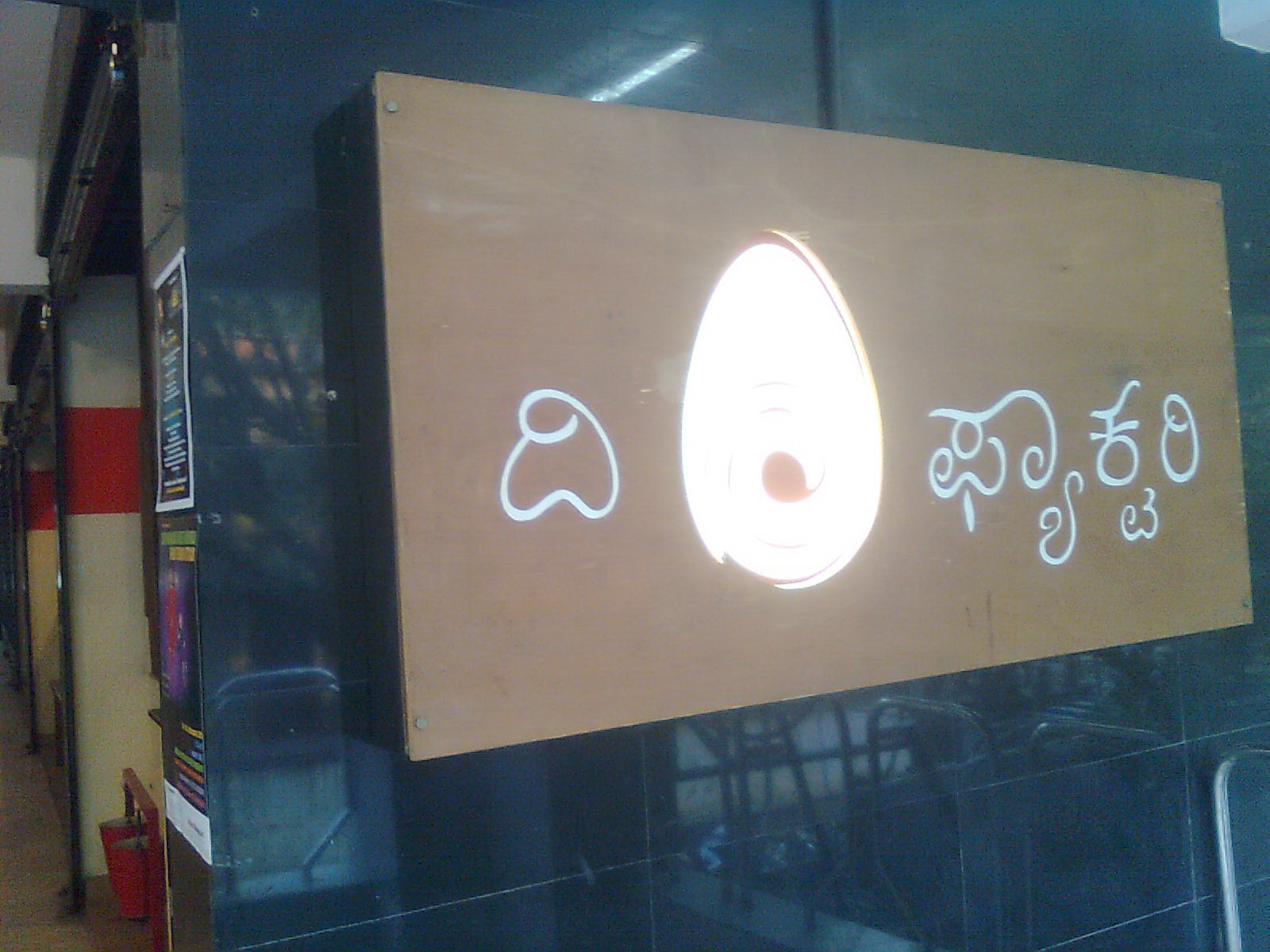 With such recollections floating around, I and a close pal, a year ago motored into the orbit of Bangalore's Egg Factory, located on St.Mark's Road. What I hadn't factored in was my friend's gustatory timidity- his idea of being an adventurous taster comprises ordering Idli in a Dosa joint. He played down both the range and number of my orders, gazed into the menu and then cooed "Oooh, Egg Chilli!!!" upon spotting that offering on the list,while I beat my forehead in exasperation- why order here of all places a dish that is available in most Dhabas from Davangere to Tumkur? This dish which was eventually ordered was good but not worth travelling halfway across the town for; we then tried Spanish omelette (a subtle counterpoint to the fiesta I was expecting) and Classic French toast with maple syrup (suited more for Continental kids than for Indian adults).