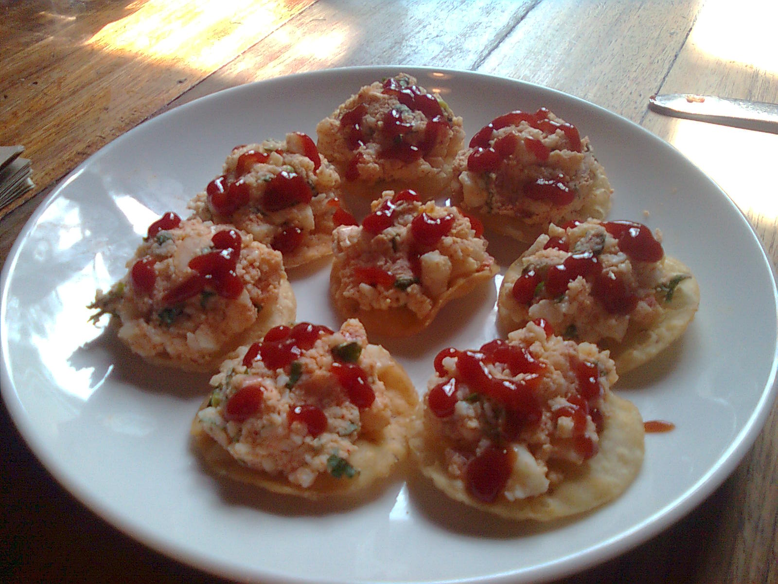 Anda paapdi chaat- On special request from connoisseurs, the chef agreed to do this dish 23 minutes before its scheduled 3-30 pm availability- crunchy discs of fried wheat-flour had been topped with a smoothly delicious blend of egg-potato-cilantro. This was sprinkled with vibrant red drops of tomato sauce. In a series of flashes,this superb chaat was munched into complete disappearance.