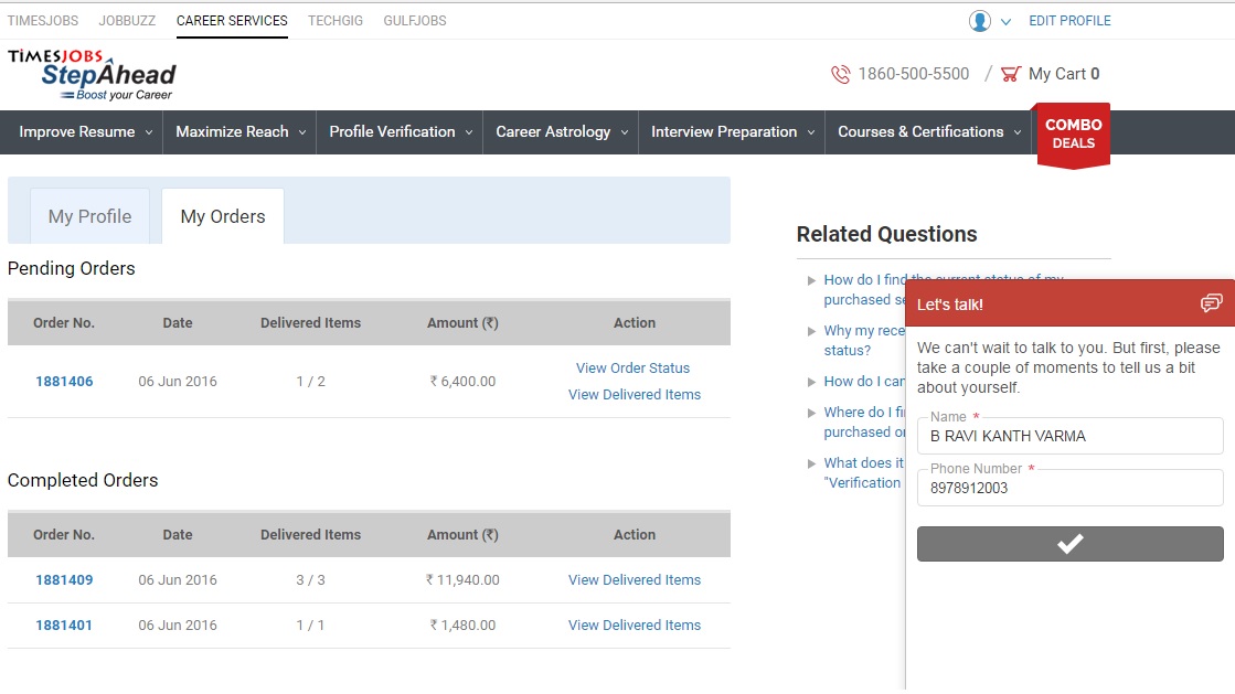 This guy ensured 100% confirmation of the job and stated that times job is not a fraud and you know the size of the organization and we don't make fake promise. Further he mentioned that since you have registered which is valid for lifetime now need to do some changes and correction to your resume as per international standards and for that u need to pay very 3790/- and further for processing fast within 24hr an additional charge of 1090/-, for cover letter 490/-