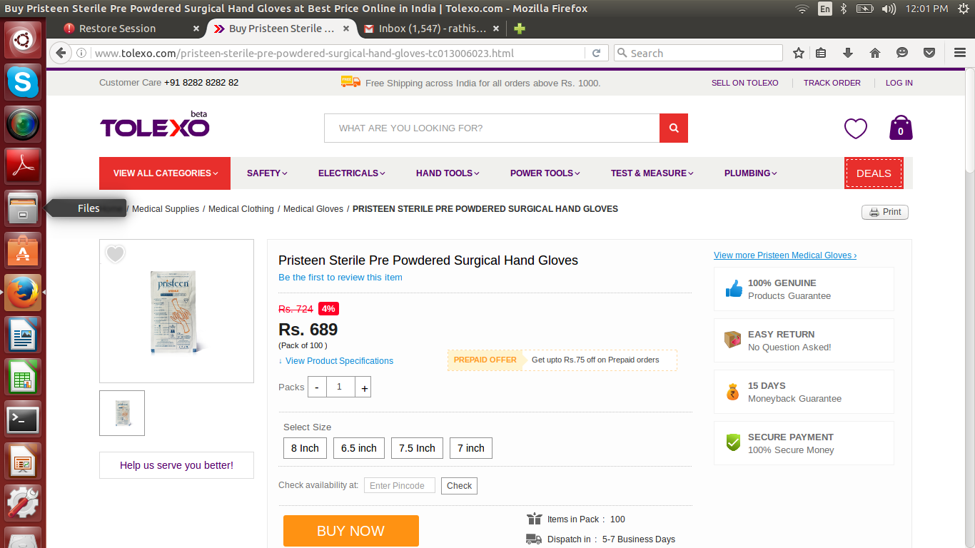 when I received the product(TOD104764492), I realised that its only 50pieces in quantity and refused to take the order. I had orded 2 of 100 pieces each and why shoud I pay more? . The tolexo executive called me and informed that he would reorder the product and ensure that I get whats listed in the site.