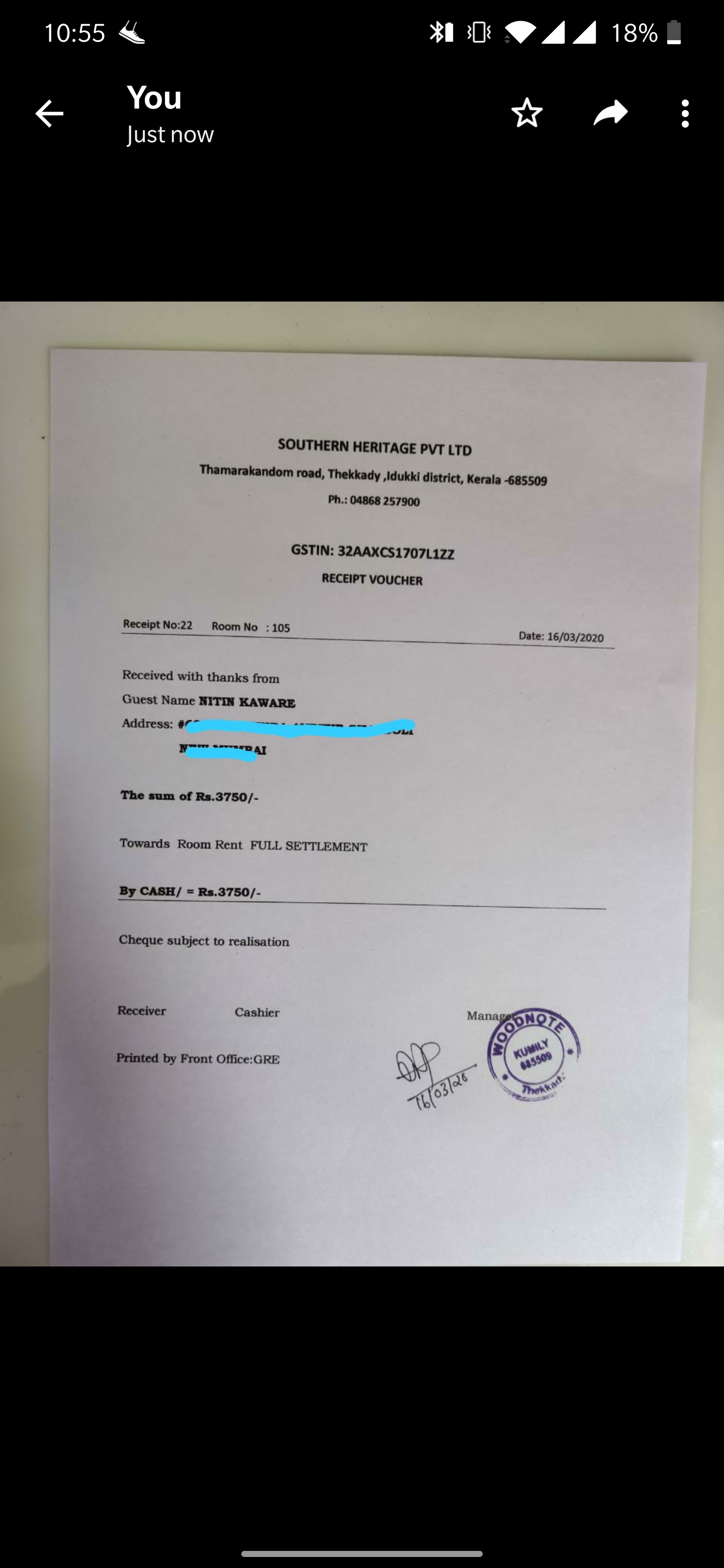 The hotel manager was not allowing me to leave the hotel without paying the amount. My schedule was to leave the hotel at 10.30 for Sagara Beach Resort, Kovalam.