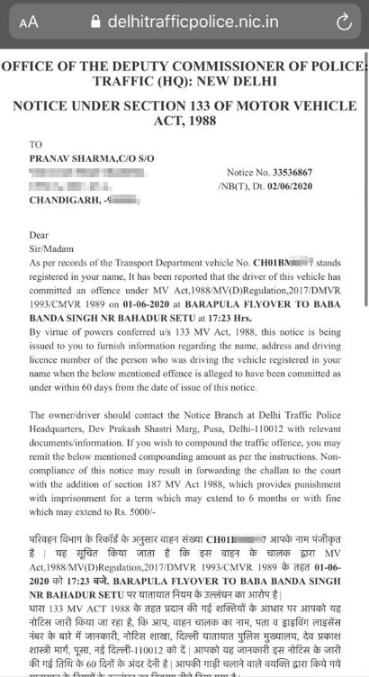 On 11th June, I got a message on my mobile from Delhi government with a challan amounting Rs. 2000 for overspeed on some "barapula" flyover in Delhi on 1st of June.(Remember, Dinesh told me on 31st May that the car had reached to Mumbai and waiting for unloading). I guess some ghost came and caused this overspeed challan of my car.