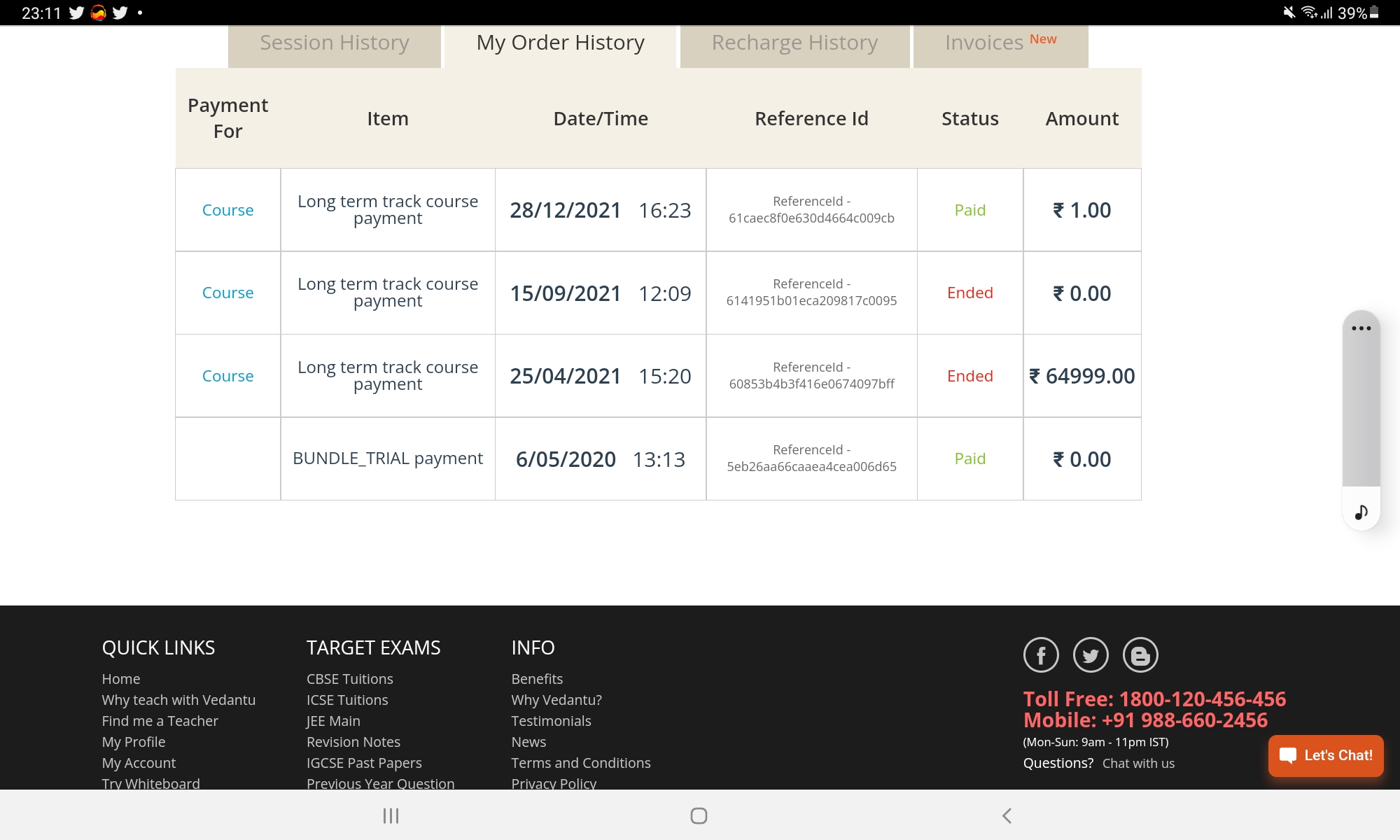 Only solution to get refund, go on play store and give 1 star rating, let them know the power of public, our aim to bring its rating 2 , and do this as much you can. Second share on whatsapp groups and facebook group to give vedantu 1star rating, and never enroll in their case, ..If you want your money guys, just critice vxxxx kxxxxxx on his personal profile, like Facebook, Instagram, Twitter, etc., see in the file below , I bought course in April at 65k, and after paying all money, they removed my account and no tuition