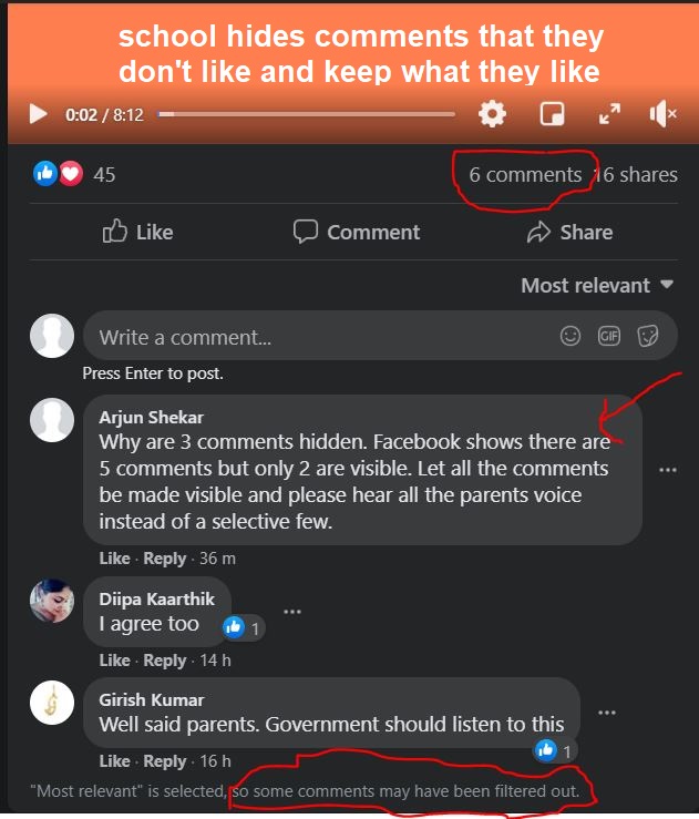 4.There is a Facebook page that they maintain for ICSE and CBSE, where they post all achievements from school. But apart from that recently they are posting videos of parents who are requesting online classes during the COVID situation. While online classes may be good but the comments on this page by various parents are hidden and only comments that agree to the video are displayed and other comments are filtered and hidden by the school. I lost hope and find VVP being dishonest and not genuine in listening to what parents have to say.