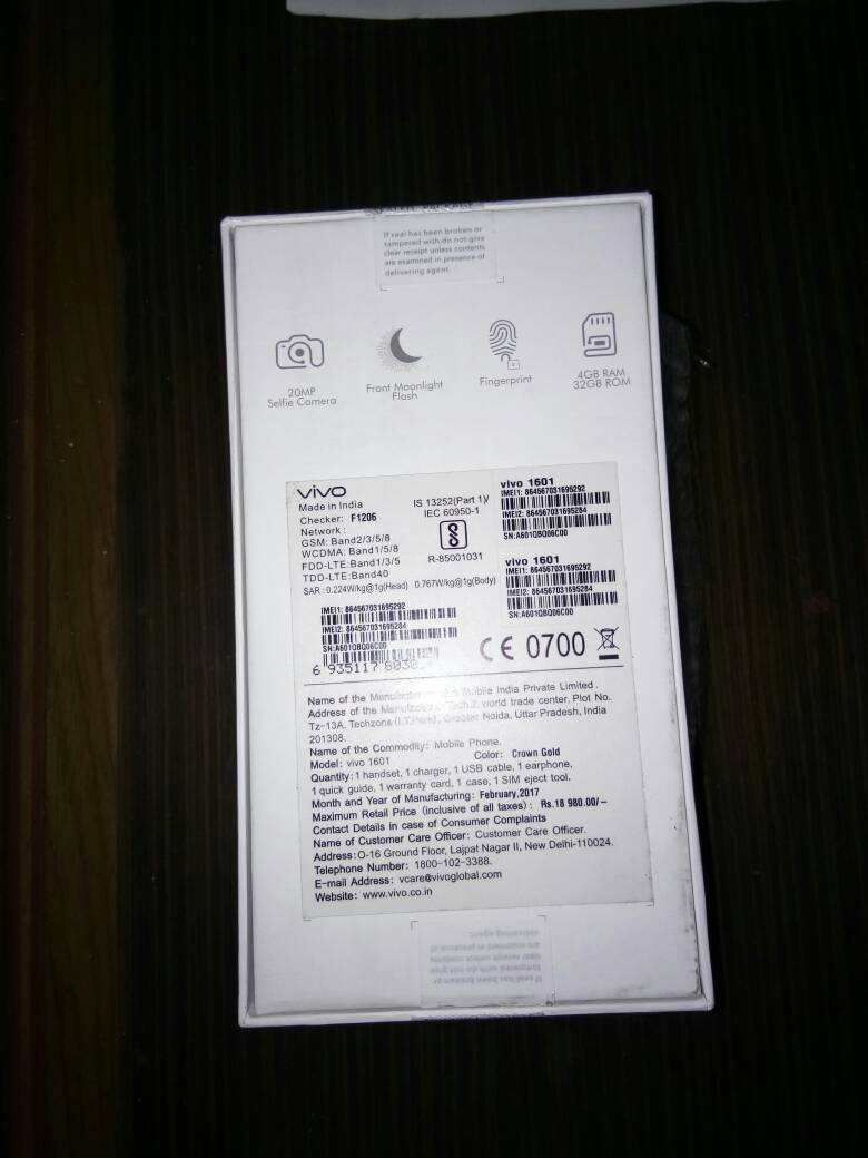Hello friends, recently I have buyed a vivo v5 new smartphone it came with a 20mp front and 13mp rear camera. It has 4gb ram and 32 rom. It run on andriod operating system 6.0.1. Now when we talk about it camera it front camera have a front flash due to which it give good picture in night also. It has different camera mode like slow motion, time lapsed, ppt, night, etc. It's rear camera is not good its pixel quality is low as compared to front camera. It has a screen size of 5.5 inch due which it's handling is not good. When we talk about its security function its come with finger print scanner and its unlocking speed is very fast.