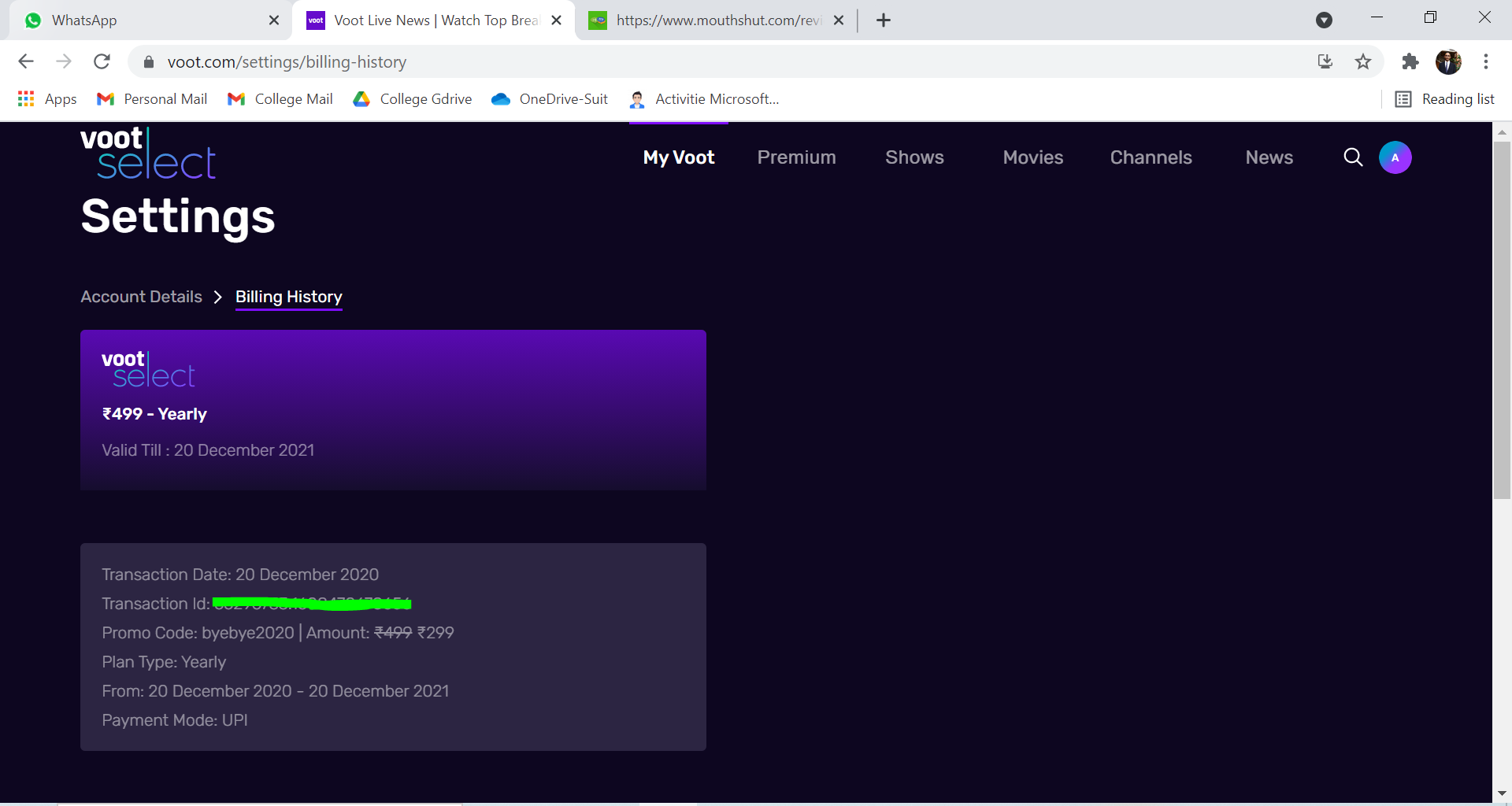 Basically I subscribed to Voot to watch Live channels(Colours and CNN News 18) and movies. Bought a ₹499/annum subscription for only ₹299/Annum on the Year end/Christmas Discount. We mainly use it in Laptop(browser) and Firetv. So here is my pointwise experience: