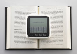 Wikireader is a handheld encyclopedia with all contents of Wikipedia downloaded into an SD card. It needs no internet access as the contents are pre-loaded. It is slightly bigger than pocket sized (4"x4") but quite light @ 125g.
