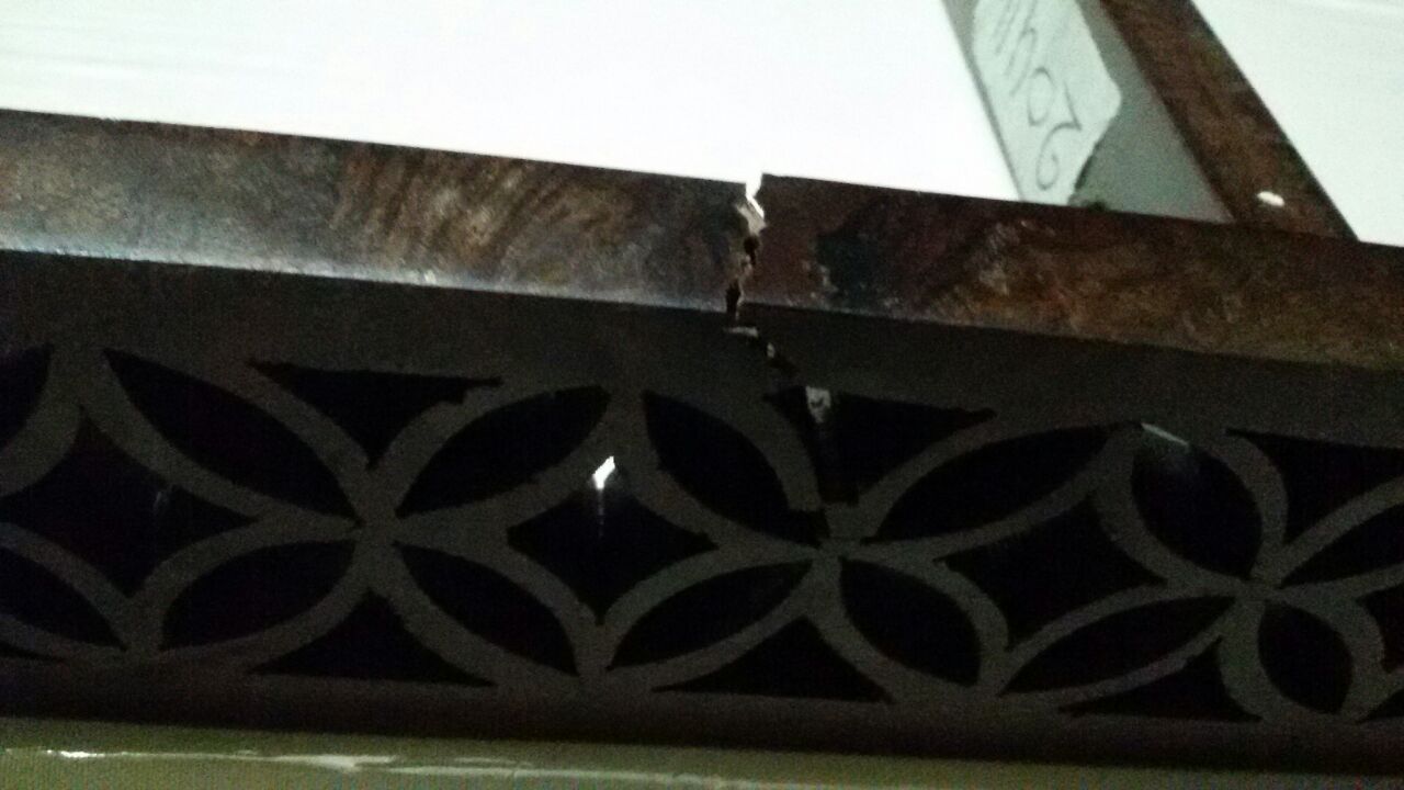 Cracks on the legs of chairs fixed on 24th Aug( though some were huge cracks.was fixed with some glue and polish.not satisfactory.Though complained about that to customer care, , they just pacified us saying those cracks will cause no problems.was literally hushed up though we did not like the repair .