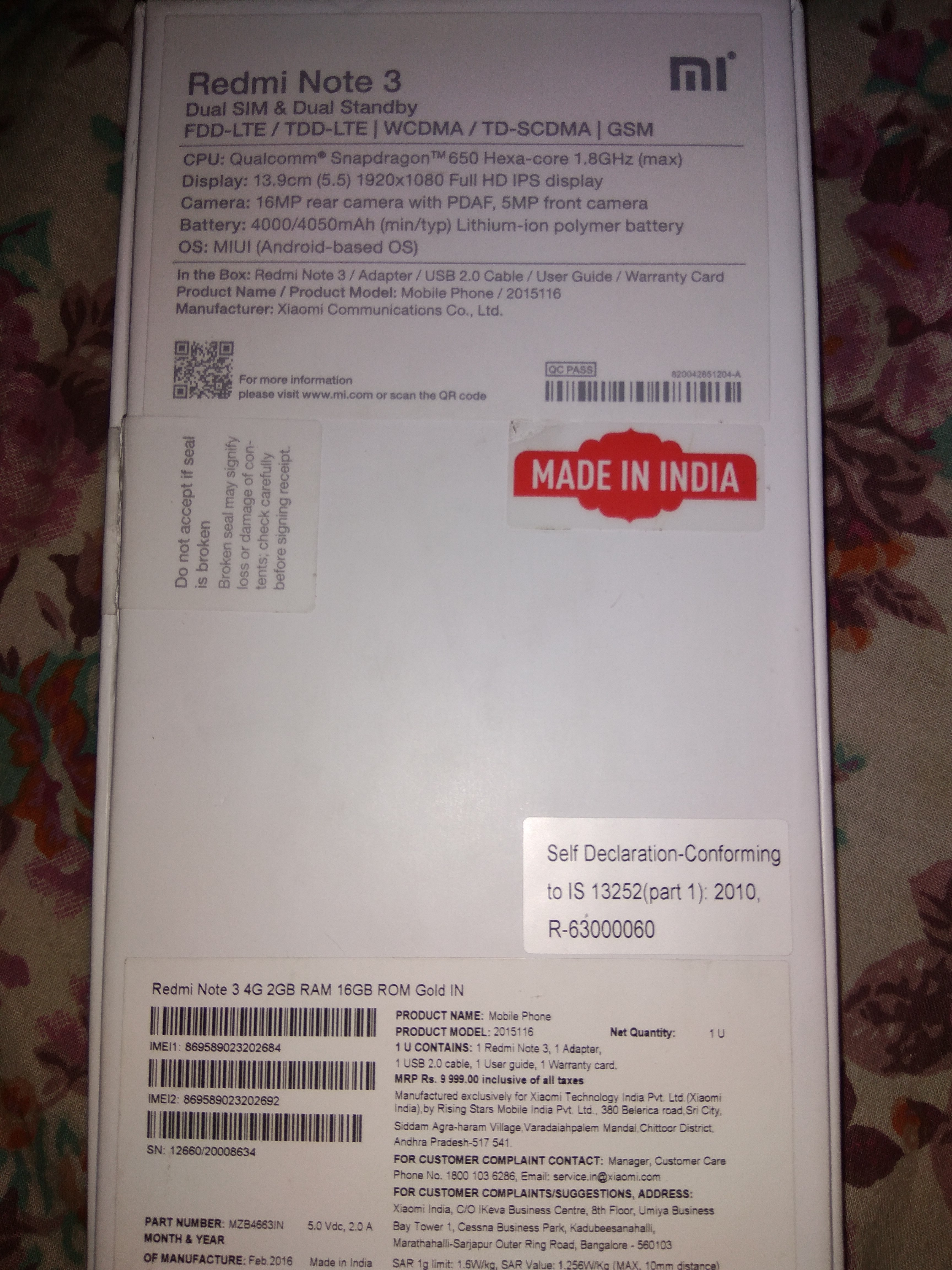 16 march I ordered the phone Redmi note 3 2gb 16gb verient it delivered on 19th march I just give my opinion about the device I know all know that mi is well known for its price to perfect product but after redmi note 3 the company get a new mile stone for budget line up.