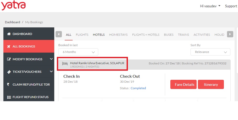 Wo days before, I have used yatra.com to make a hotel booking in Solapur for my cousin and that was my worst experience as online booking. The booking ID is: 271281679332