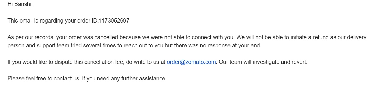 My efforts: I made 5 calls to help him find the address and in the last he told me that Zomato has canceled the address